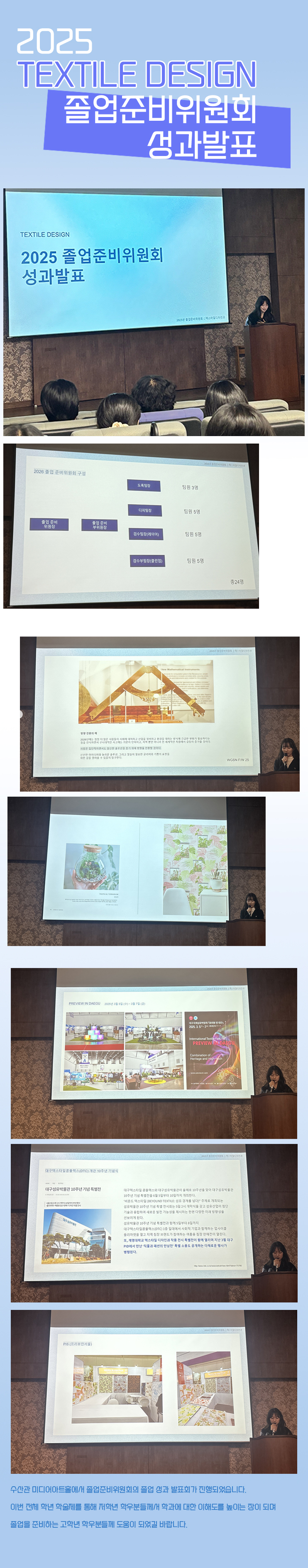 수산관 미디어아트홀에서 졸업준비위원회의 졸업 성과 발표회가 진행되었습니다.