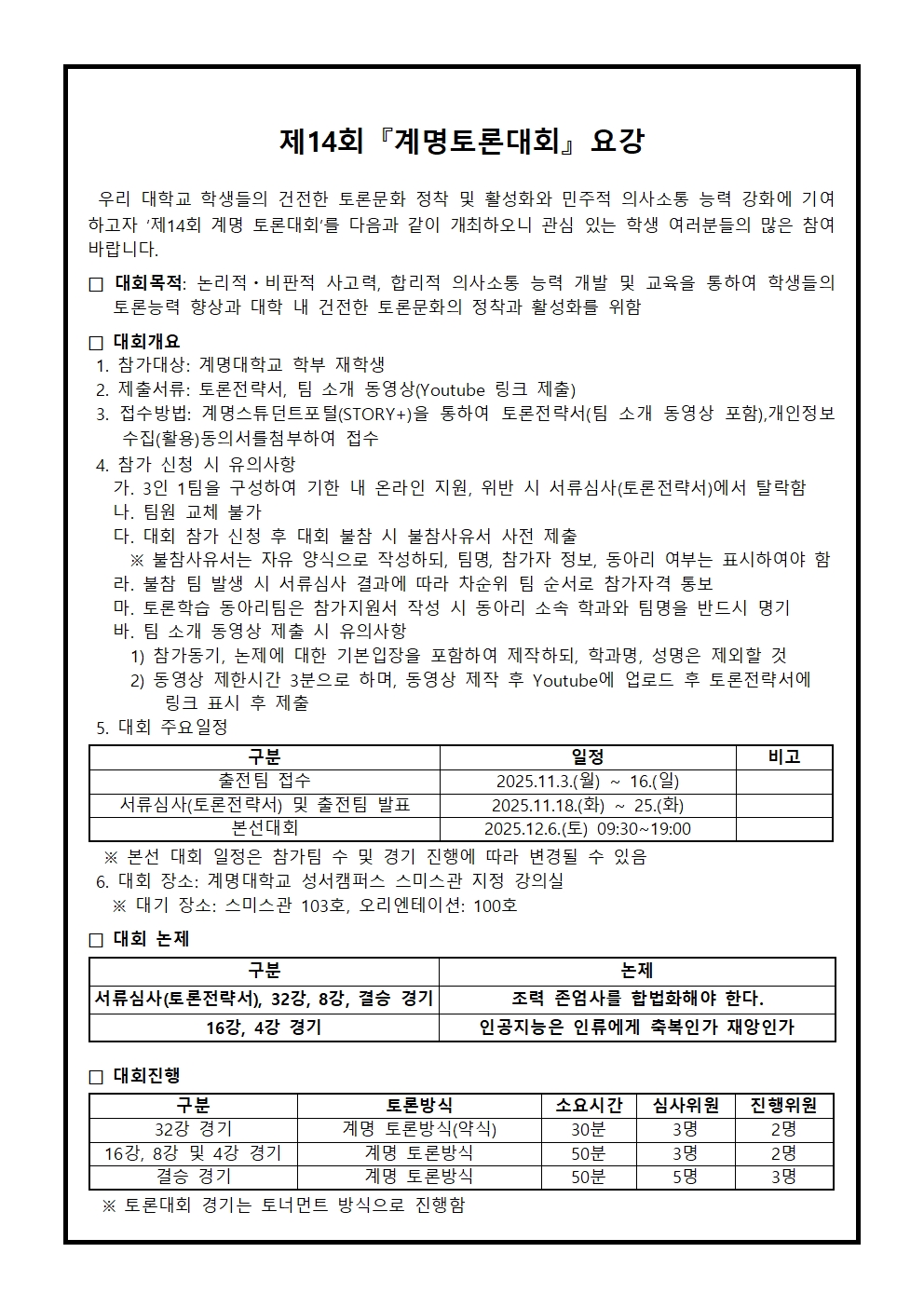 제14회 계명토론대회 개최 안내